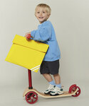 Hi-viz reflective strips, concealed name card holder on the back. Webbing handle.