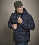 Recycled matte textured ripstop polyester outer. DuPontâ„¢ padding. Recycled self colour nylon 380T lining, dusty orange has contrast lining. Showerproof. Grown on hood with bound opening. Full length SBS zip with chin guard and inner zip guard. Inner pocket. Two front zip pockets. Bound elasticated cuffs. Drawcord hem.
